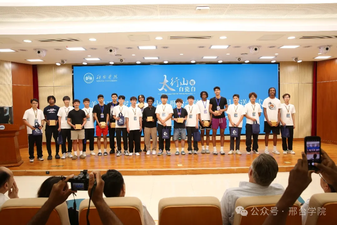 6月12日-19日,美国圣保罗高中剑士篮球队师生一行16人受邀来到邢台学院,举行“太行山前白瓷白”国际青少年主题研学活动。此次活动由河北省国际教育交流协会推荐,邢台学院主办,旨在通过篮球赛事、文化交流、艺术体验等活动,感受河北丰富的文化教育内涵,加深两国青年学生之间相互了解和友谊,领略中华文明、邢襄文化,感受燕赵大地、泉城风光。圣保罗高中(St Paul High School)成立于1956年,位于美国加利福尼亚州,是一所高质量的美国私立高中,该校坚持实行个性化教育,培养学生为社会公正、学术卓越、精神成长、体育成就、艺术的发展而努力。圣保罗高中剑士篮球队在知名教练帕特里克·罗伊的指导下,不断锻造传奇,在美国2A级别锦标赛、地区州季后赛、1级别季后赛等比赛中取得优异成绩。6月15日、17日,圣保罗高中剑士篮球队分别与邢台学院、石家庄二中篮球队进行比赛交流,双方球队展现出高水平的篮球技能,快速的进攻、严密的防守、精湛的篮球技巧和战术配合赢得了现场观众的阵阵喝彩。16日,在邢台七里河畔,师生登上龙舟,齐心协力、奋楫逐浪,感受中华传统龙舟赛。体育竞赛增进两国青少年彼此了解,获得体育的快乐,收获珍贵的友谊。圣保罗高中师生一行在邢台学院校园参观了百年四师旧址、北方大学纪念馆、校园艺术街区,欣赏白瓷乐器演奏,近距离了解学校历史文化底蕴和校园特色环境。走出校园,师生们参观了邢台市博物馆、园博园太行馆等场馆,了解“太行泉城,美丽邢台”的历史与文化。赴内丘邢窑遗址博物馆、窑址馆参观,感受“如银似雪”的邢窑白瓷。通过观看学习中国武术展演、中国民族音乐演出,深入感受中华传统文化的魅力。在正定隆兴寺等场馆,领略燕赵大地的历史、人文、地理的特色风采。在石家庄动物园里,憨态可掬的国宝大熊猫更是赢得了大家的喜爱。大家还亲身体验了邢窑白瓷制作、“学说十句中国话”、“学一招中国功夫”、中国传统美食文化——包饺子、 “学唱一首中国歌”、中国传统书画、中美青年共唱同一首歌等特色活动,丰富多彩的艺术体验增进了彼此的了解,双方互学互鉴,在校园里共同种下友谊树。美国师生还赴北京参观故宫,攀登长城,领略中国灿烂悠久的历史与文化。在欢送仪式上,圣保罗高中校长罗伯特·米勒表示,这次河北邢台之旅令人难忘,感谢邢台学院的热情接待和为此次访问提供丰富多彩的体育文化体验,热闹的龙舟赛、引人入胜的博物馆以及东方文明的热情好客给他们留下深刻印象。通过篮球友谊赛,建立了深厚友谊,展现了体育力量。希望继续推进文化交流项目,努力实现更深层次和更持久的合作。本次研学活动,为中美两校师生提供了相互学习交流的平台,让双方建立了深厚友谊,了解了彼此文化,搭建了沟通桥梁,增进了中美青少年之间的友好交流,有利推动双方在文化、体育等方面的合作,深化对彼此文化的理解和认同,促进两国青少年的共同进步和发展。邢台位于太行山脉东麓,有着3500年的建城历史和灿烂文化,山水秀美,人杰地灵,“遍野甘露溢,平地群泉涌”,素有“太行泉城”之称。邢台是中国白瓷的发祥地,南北朝时期邢窑白瓷的烧制成功,一举打破了自商代以来青瓷一统天下的局面,形成了“南青北白”的格局。为传承弘扬邢窑白瓷文化,邢台学院成立邢窑白瓷文化产业研究院,深入开展相关研究和推广工作。此次以“太行山前白瓷白”为主题开展国际青少年研学活动,是助力邢台“文化兴市”战略,弘扬邢台优秀历史文化,推动邢窑白瓷文化走向世界的有益尝试。